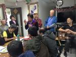<本會訊>12月7日早上10點馬世光神父和會長劉鍾秀姐妹帶領聖母聖心會之友會代表訪問平安居的街友,與街友互動聊天並贈送保暖的毛帽,金鳴麟弟兄以吉他伴奏歡唱聖歌,在「平安夜」的歌聲後大家提早互祝聖誕快樂,接著一起共享豐盛的午餐。