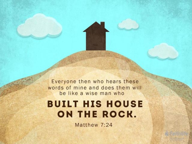 所以,凡聽了我這些話而實行的,就好像一個聰明人,把自己的房屋建在磐石上:雨淋,水沖,風吹,襲擊那座房屋,它並不坍塌,因為基礎是建在磐石上。