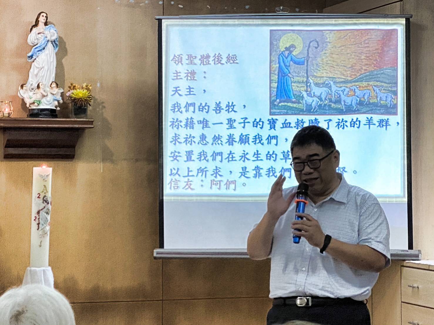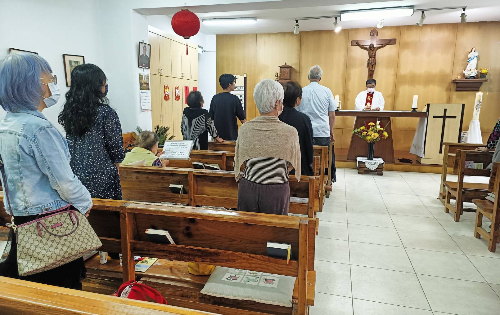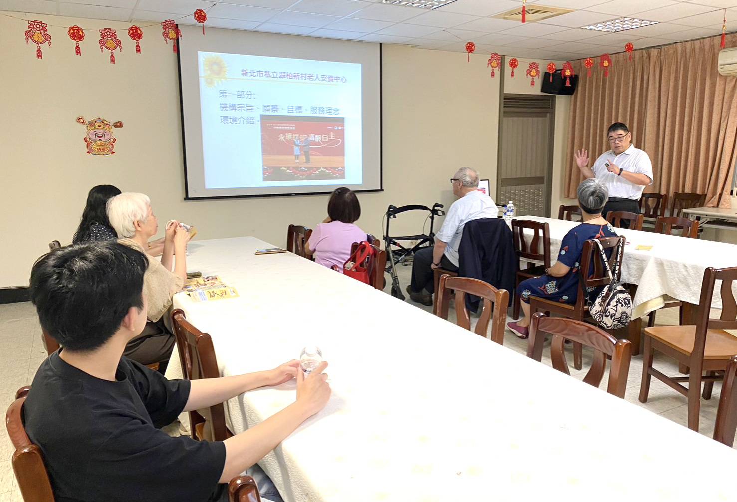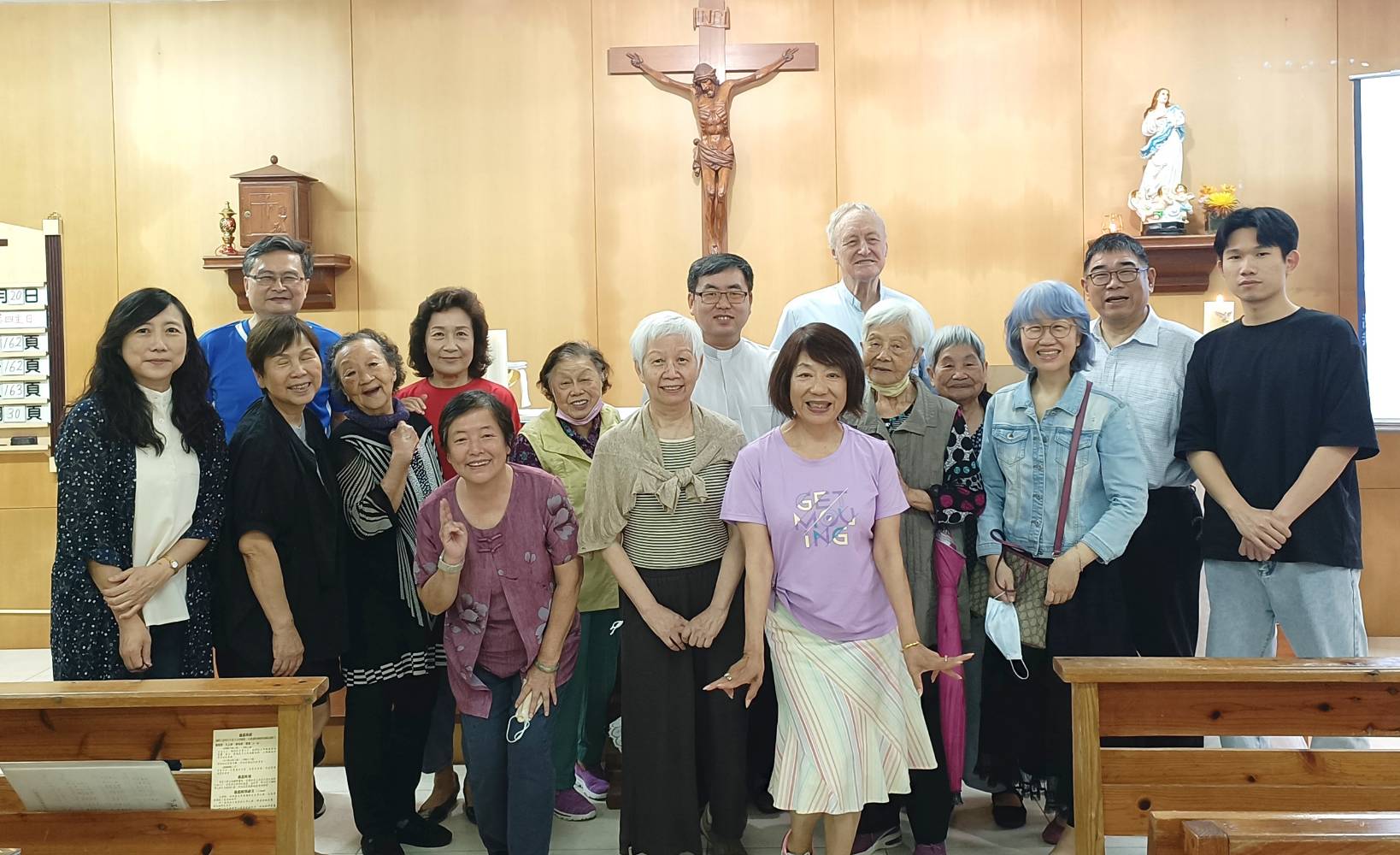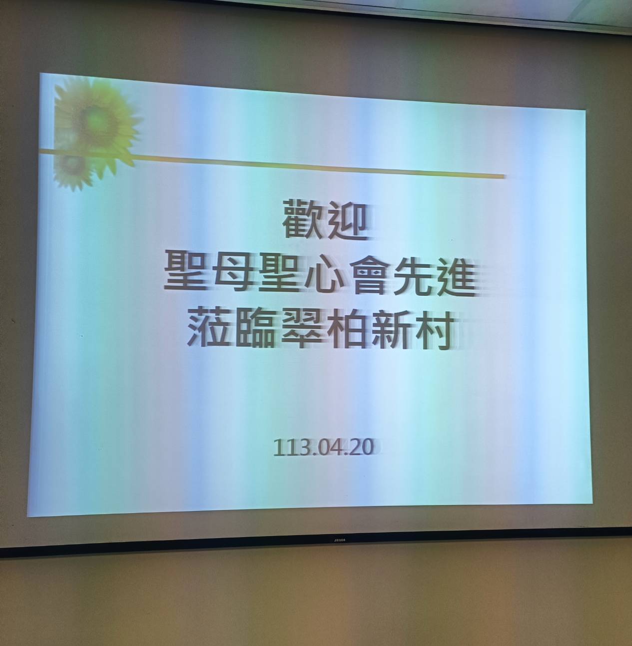 四月二十日(星期六)下午,吳偉立神父及美珠會長率領本會前會長開儀、秘書怡君及關懷組六位姐妹拜訪位於新北市汐止區的老人機構「翠柏新村」,本會弟兄也是翠柏新村「易主任」親自接待簡報現況,並與該機構長輩一同彌撒。