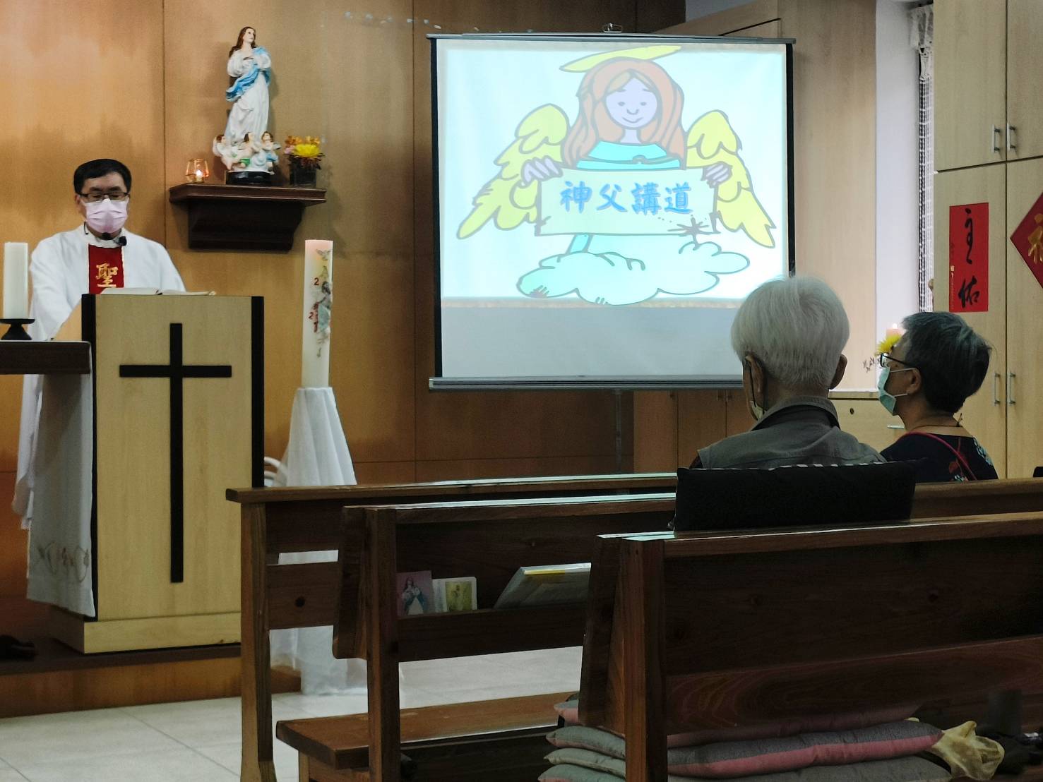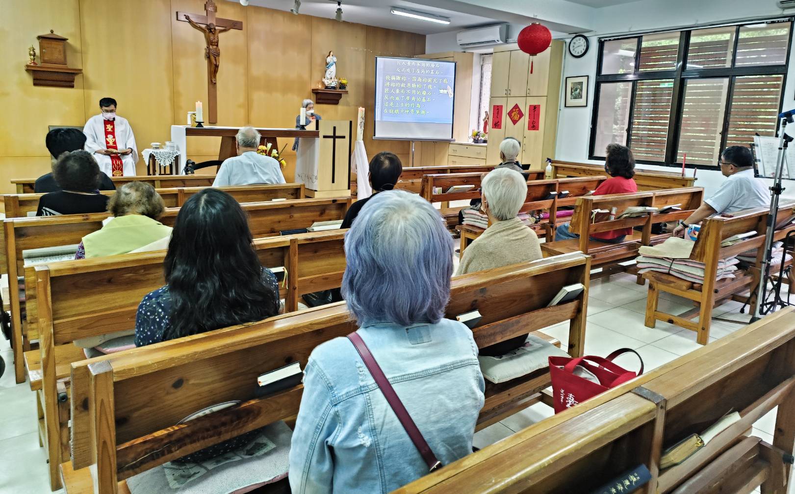 彌撒後吳神父代表本會向長輩致意,美珠會長準備了精美的盒裝點心分享長輩,傳送滿滿基督的愛。感謝主恩賜給會內弟兄姊妹一個特別溫暖有情的週六彌撒。